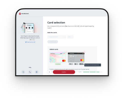 We’ll reward you with 0.1% Cashback on transactions you make with your card up to 999,99 EUR monthly and 1% cashback on transactions you make with your card more than 1000,00 EUR, usually on the first business day of each month. You’ll receive the Cashback in your Bilderling ’s account linked to the card. We’ll give you your Cashback in the currency your card is issued.